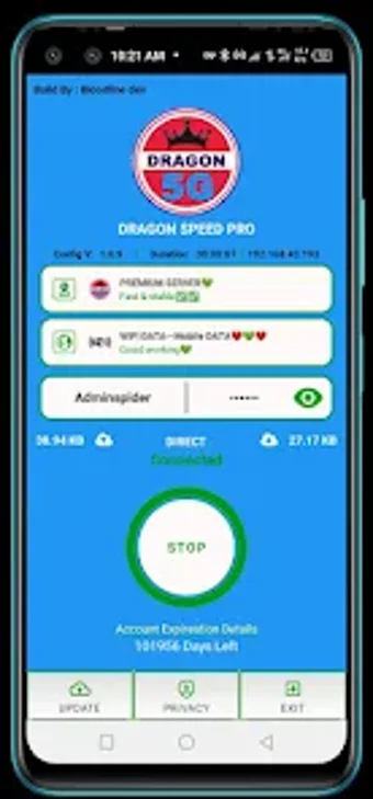 DRAGON SPEED PRO เป็นแอป VPN ที่แข็งแกร่งออกแบบมาสำหรับผู้ใช้ Android โดยมุ่งเน้นการปกป้องความเป็นส่วนตัวและประสบการณ์ออนไลน์ที่ดีขึ้น แอปพลิเคชันยูทิลิตี้ฟรีนี้รองรับโปรโตคอล VPN สมัยใหม่หลายประเภท รวมถึง OVPN3, SSH, Hysteria UDP, DNSTT และ V2Ray เพื่อให้ผู้ใช้ได้รับประโยชน์จากการเชื่อมต่อที่เสถียรและปลอดภัยในเครือข่ายและสถานที่ต่างๆ เทคโนโลยีการสร้างอุโมงค์ขั้นสูงของแอปนี้มอบความยืดหยุ่นและความปลอดภัยที่แข็งแกร่ง ทำให้เหมาะสำหรับความต้องการการท่องเว็บที่หลากหลาย